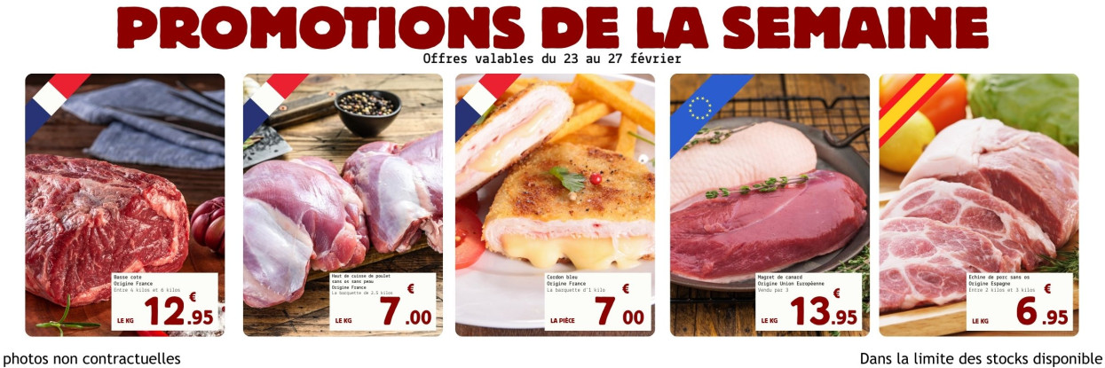 La Viande Pour Tous vous propose différentes pièces de viande à la vente (bœuf, agneau, veau, porc) et de volailles (canard, poulet, dinde, lapin, caille) en semi-gros, conditionnés sous vide et vrac.